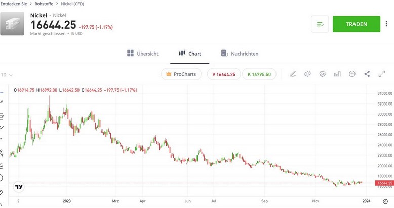 Die Rally der Rohstoffwerte hat am Dienstag auch Nickel erfasst. An der Rohstoffbörse in London stieg der Preis für das Industriemetall um mehr als zehn Prozent. Dies ist der größte Anstieg seit mehr als drei Jahren. Für eine Tonne Nickel wurden zuletzt bis zu 18.785 US-Dollar bezahlt.