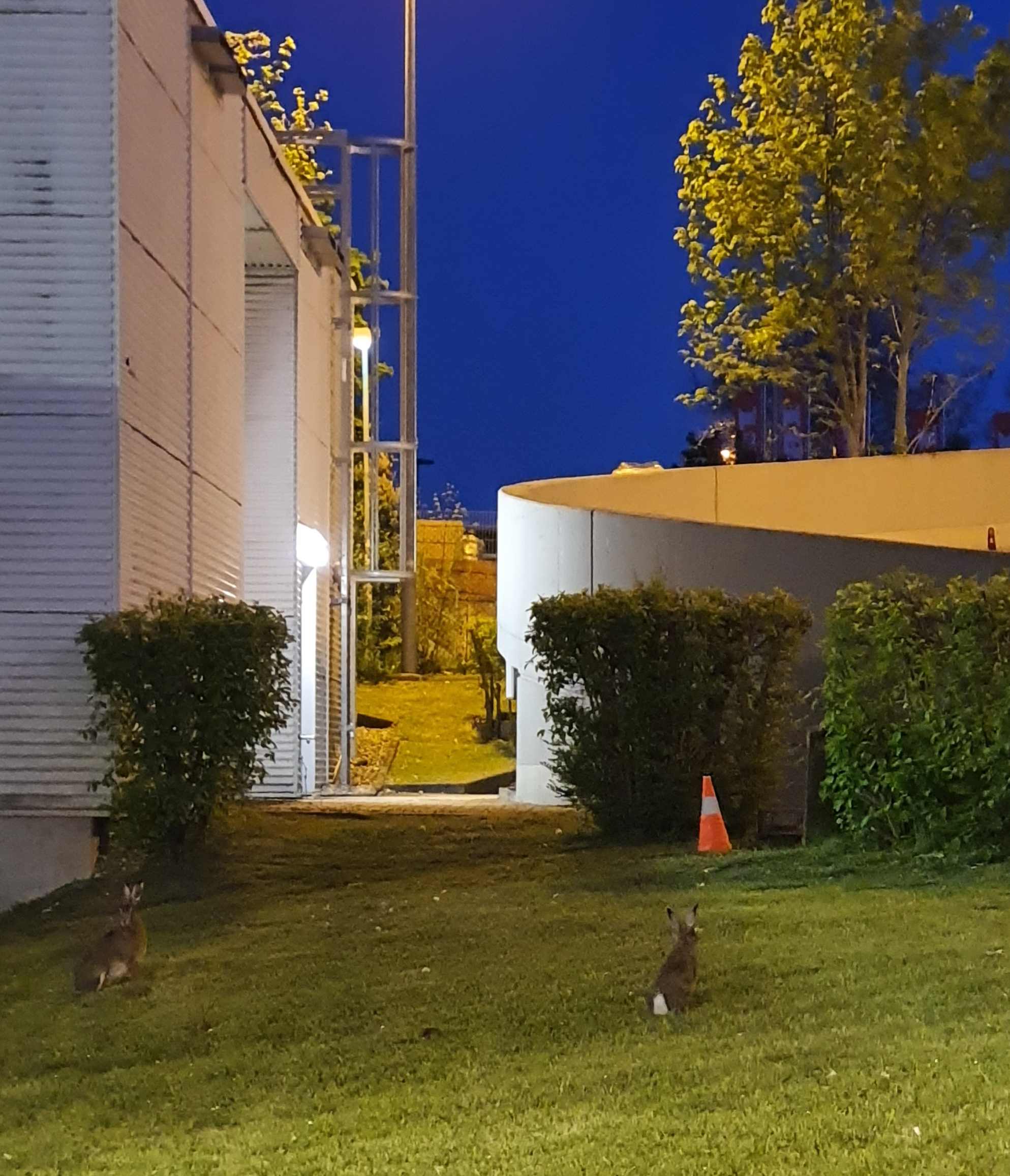 und Kolleginnen berichtet hatten) einen kleinen Feldhasen auf unserem Betriebsgelände