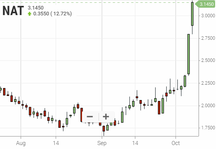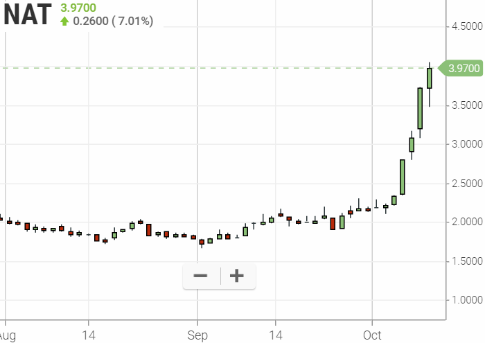 NAT hat eine der größten Flotten von Suezmax-Tankern der Welt. Die Flotte besteht jetzt aus 25 (inkl. 2 Neubauten) gut gewarteten Suezmax-Tankschiffen mit einer Ladekapazität von jeweils 1 Million Barrel Rohöl. Der Betrieb der Suezmax-Flotte wurde durch die Covid-19-Pandemie nicht wesentlich beeinträchtigt. Die Zahlung einer Dividende hat für NAT Priorität. Die Dividende für das erste Quartal 2021 beträgt 2 Cent (0,02 USD) pro Aktie. Der Gründer, Vorsitzende und CEO sowie sein Sohn Alexander sind die zweitgrößten Anteilseigner des Unternehmens.