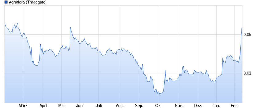 so ,bin seit Heute bei "agraflora" und" halo "dabei,warte bist September-Dezember und schau ma mal,wo sie dann stehen.0,50 Eurocent ???daß währe WUNDERBAR.