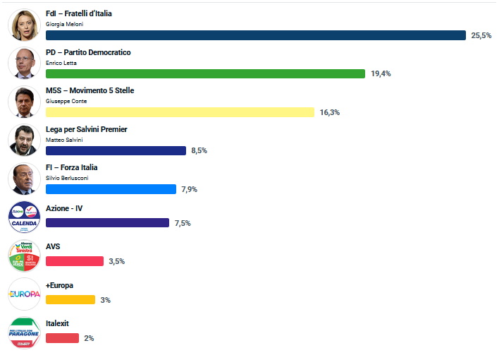 Letztlich isses doch so, dass in vielen europäischen Ländern (uns eingeschlossen) die Leute das Gefühl haben, dass die Politik ihre Interessen verrät. Frau Meloni hat es wohl erfolgreich rübergebracht, dass sie im Gegensatz zu ihren Vorgängern nicht der ausführende Hampelmann des (nicht gewählten) EU-Triumvirats sein möchte.