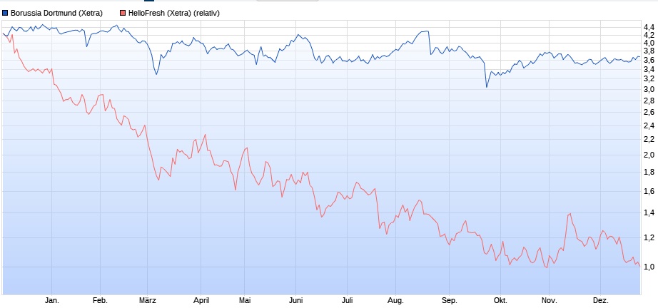 Was ich eigentlich gemeint hatte, ist aber klar? Nachdem die Hellofresh Aktie wie erwartet in den letzten 12 Monaten deutlich schlechter als die BVB Aktie performte, gehe ich angesichts der übergeordneten Nachrichtenlage auch in den nächsten 12 Monaten von einer mindestens zweistellig schlechteren Performance aus.