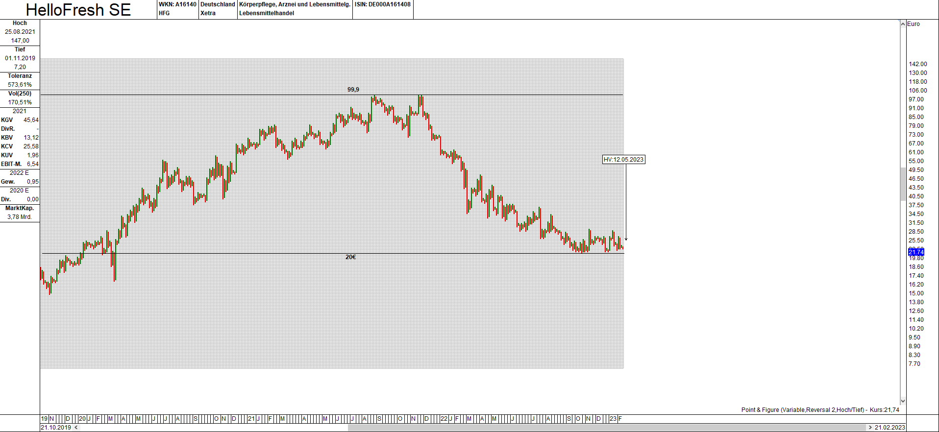 HF: in 5 Jahren einmal ordentlich rauf von ca 10€ auf ca 100€ und einmal ordentlich runter