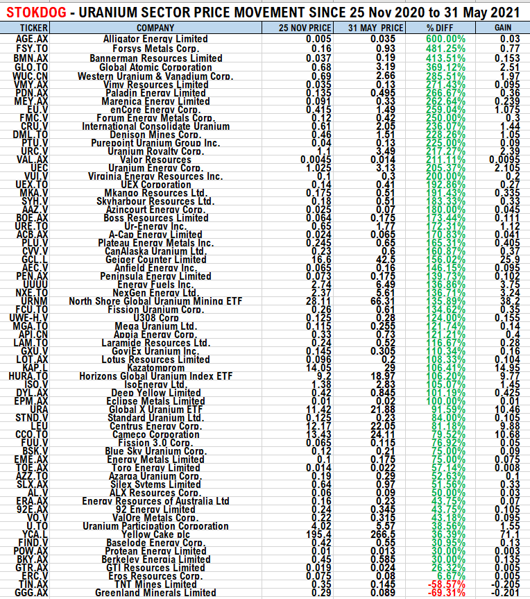 Uranium Stocks Performance Update meine Anfield hat sich nach oben geschoben.­