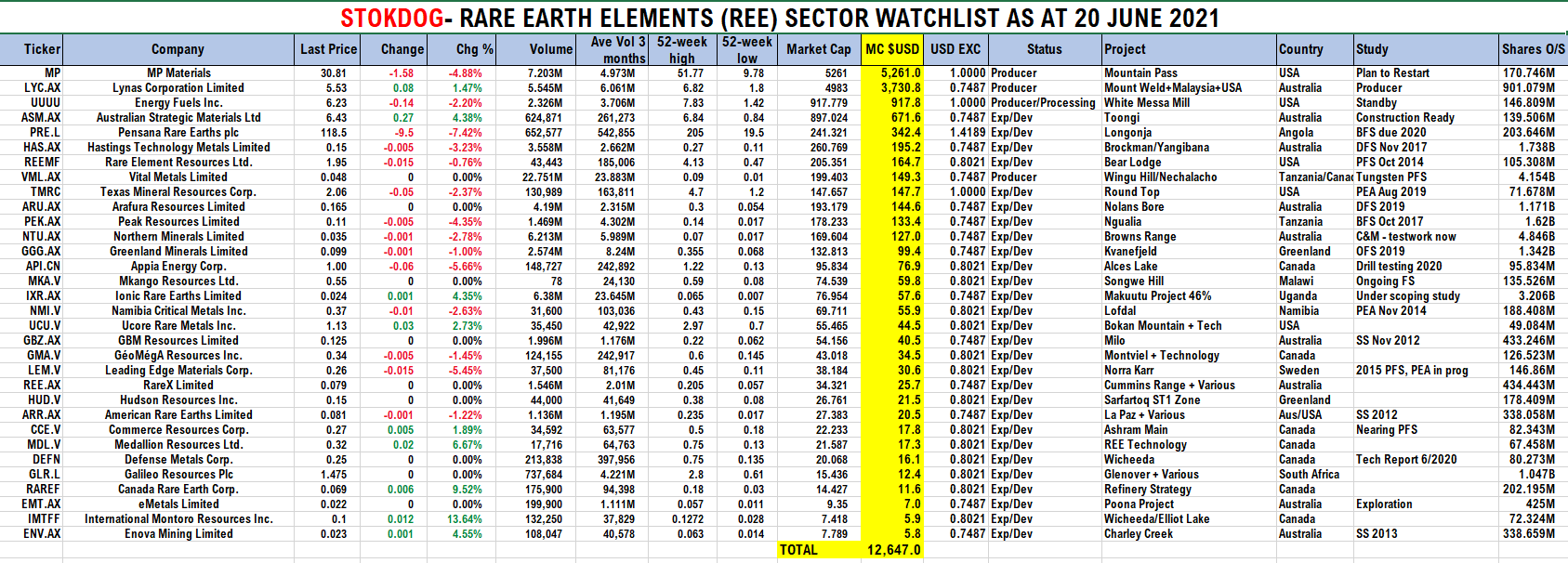 REE (seltene Erden) Aktien