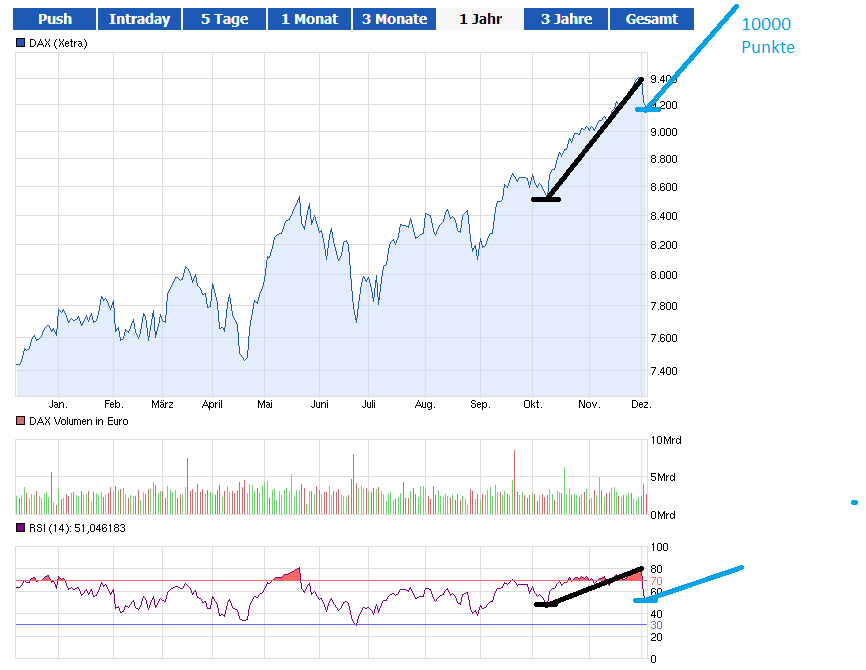 Sollten die US-Märkte diese Minikonso beenden und die Weihnachtsrally aufnehmen wird der DAX ganz schnell wieder drehen und Richtung 10000 Punkte laufen.