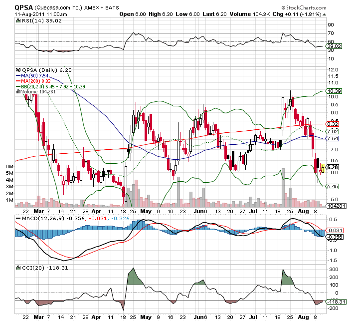 WEST PALM BEACH, FL -- (MARKET WIRE) -- 08/11/11 -- Social media technology company, Quepasa Corporation (NYSE Amex: QPSA), owner of popular Latino online social network Quepasa.com and social gaming studio Quepasa Games today reported results for its second fiscal quarter of 2011 ended June 30, 2011.