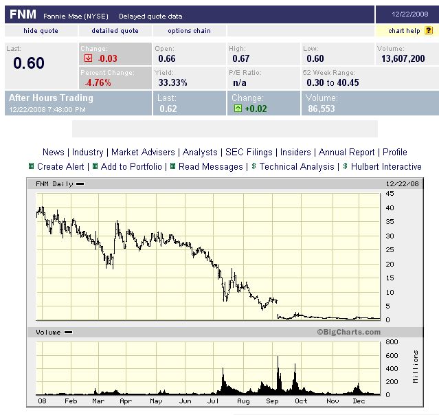 Wenn der Staat eine Bank mit Riesenmeng­en von Steuergeld­ern "freik­auft", kann sich der Chart mittelfris­tig L-förmig entwickeln­ - wie unten am Beispiel der US-Immoban­k Fannie Mae veranschau­licht.