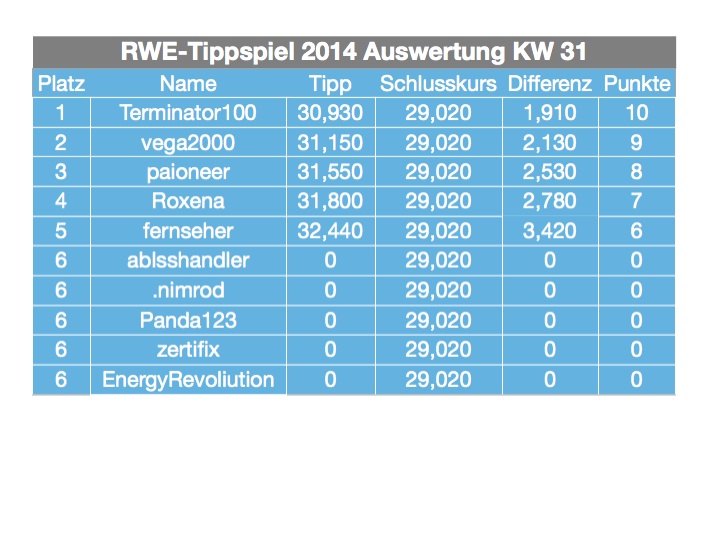 Ich belasse das aber mit der Auswertung, da sich an der Reihenfolge der Platzierungen nichts ändert!