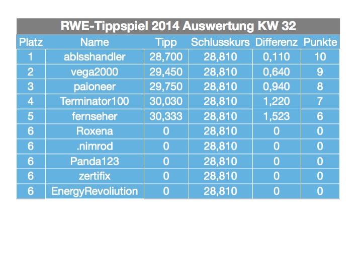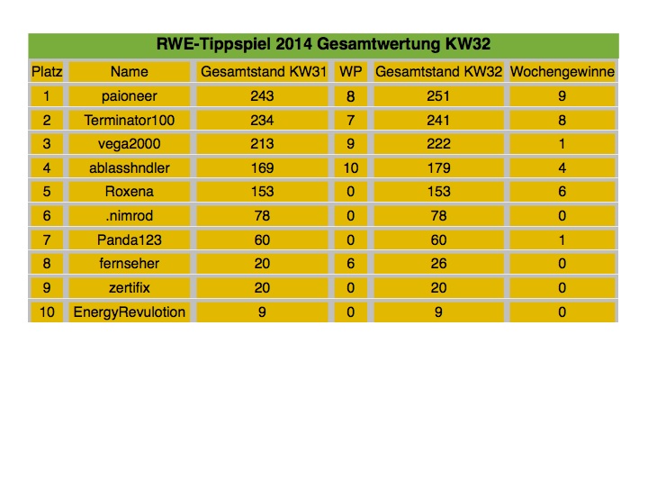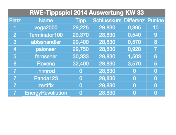Auswertungen der KW 33 erst Montag 18.08.2014!