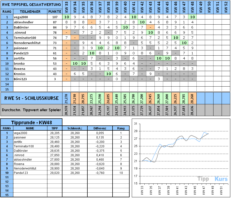 Aktuelle Tippliste KW49: (schon jetzt ein massiver Spread :D)