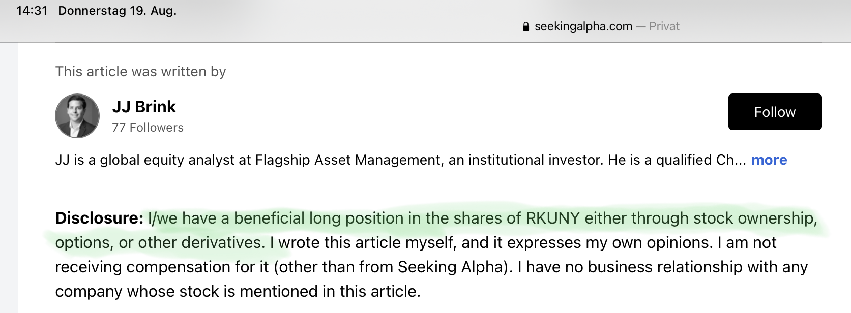 Und das sind so ziemlich die einzigen, die sich als aktives Börsenforum für Rakuten überhaupt interessieren.