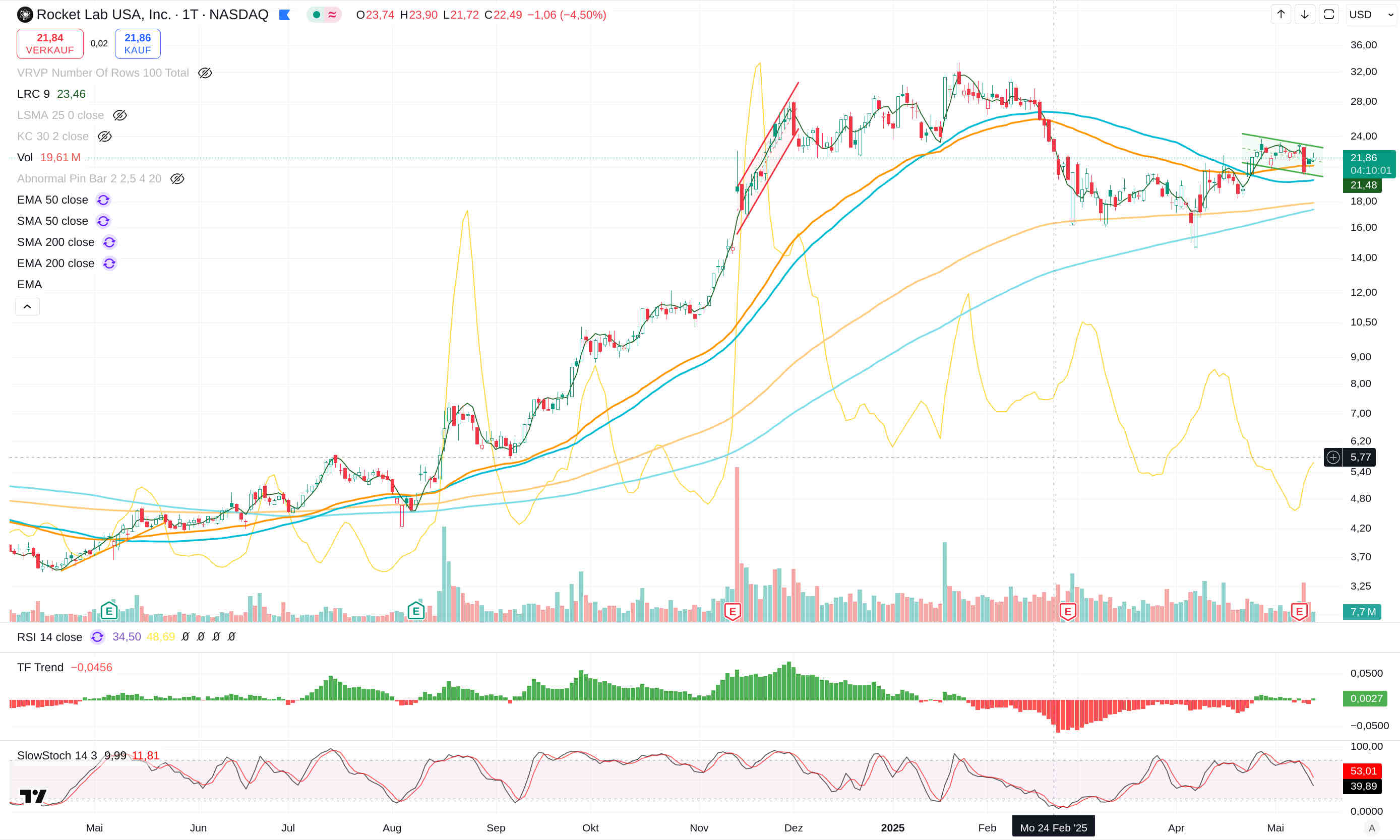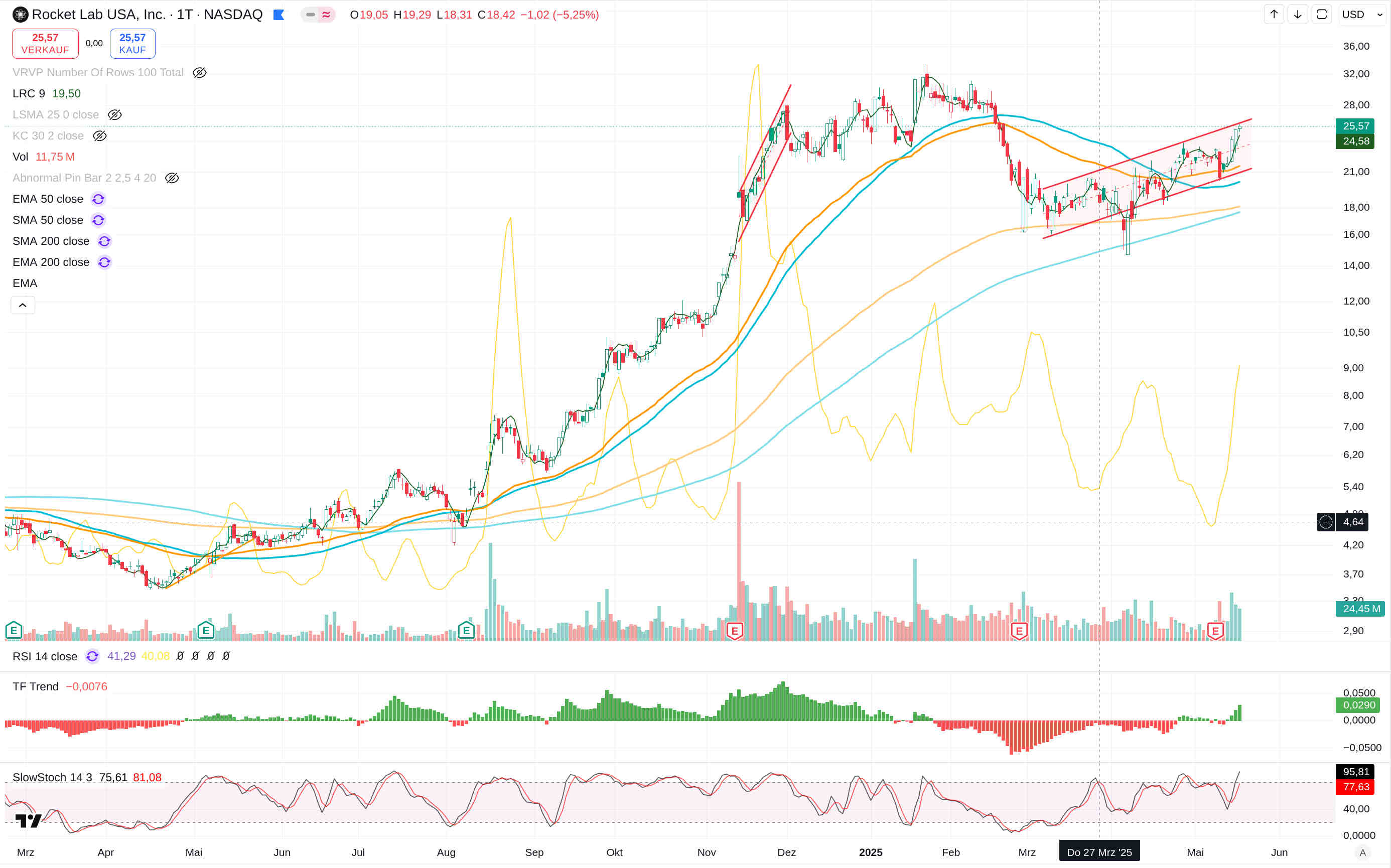 Natürlich muss man stets den Gesamtmarkt und die Trump-Politik im Auge behalten. Bei hoch bewerteten Aktien wie Rocket Lab kann eine Schwäche des Gesamtmarktes zu größeren Rücksetzern führen.