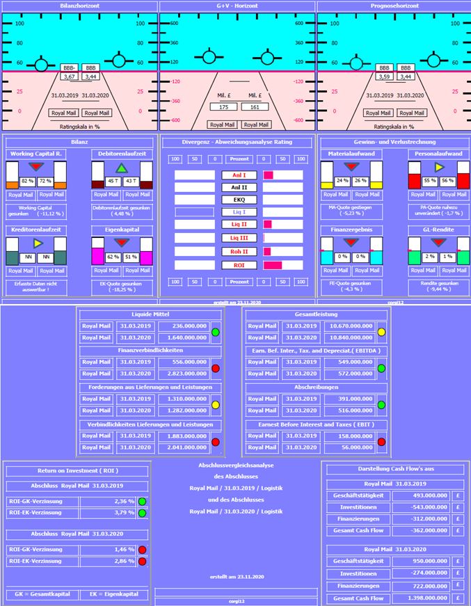 Negativ: Rohertrag II sowohl durch gestiegenen Material- als auch Personalaufwand und somit auch die Gesamtleistungsrendite/Return on Investment verschlechtert. Eigenkapitalquote durch erstmalige Aufnahme von Leasingverbindlichkeiten (ca. 1,2 MRD £) und Darlehnverbindlichkeiten (+ca. 1 MRD £) auf immer noch stattliche 51% gefallen.