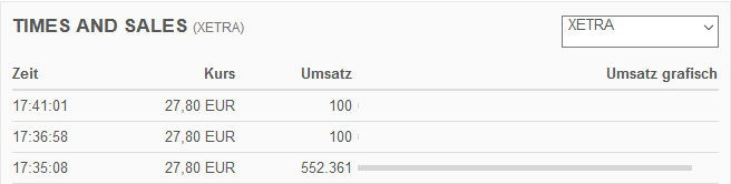 Was ich eigenartig finde, vorhin war ein Kauf im Xetra Orderbuch von 47000 Stück bei 27.650 .