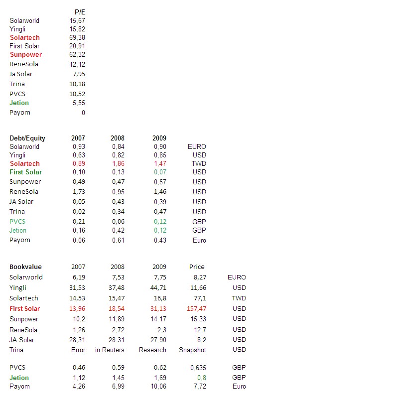 Solarwertevergleich Suntech Solarworld Jetion ..