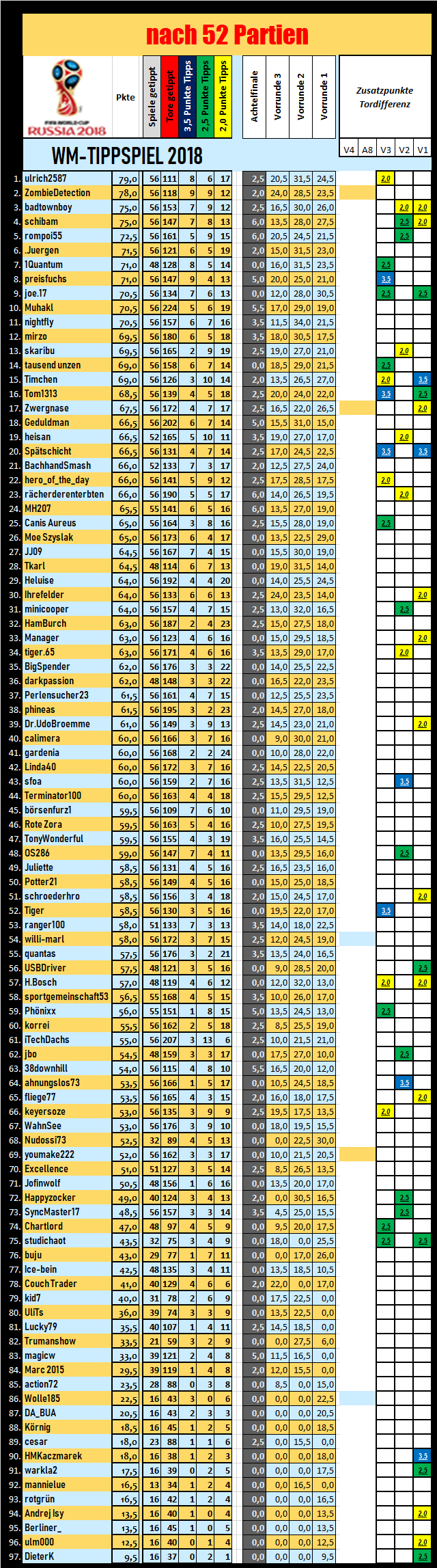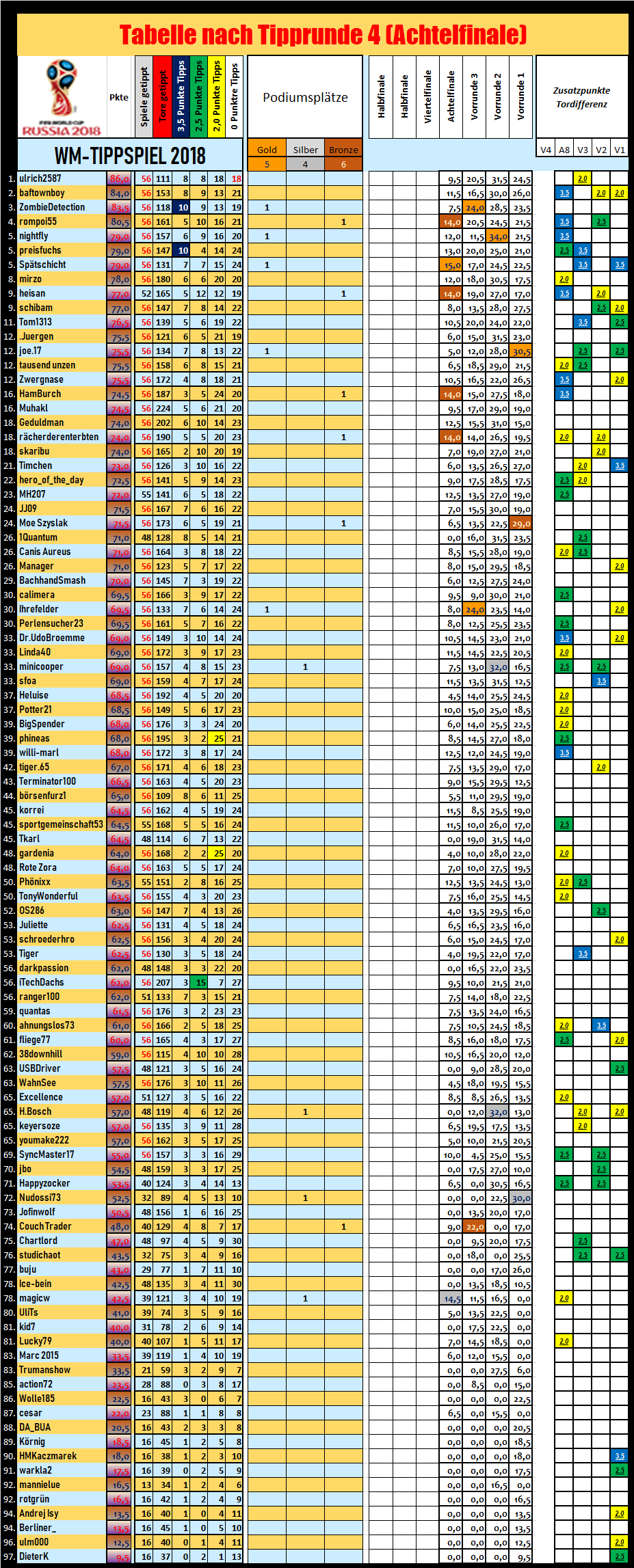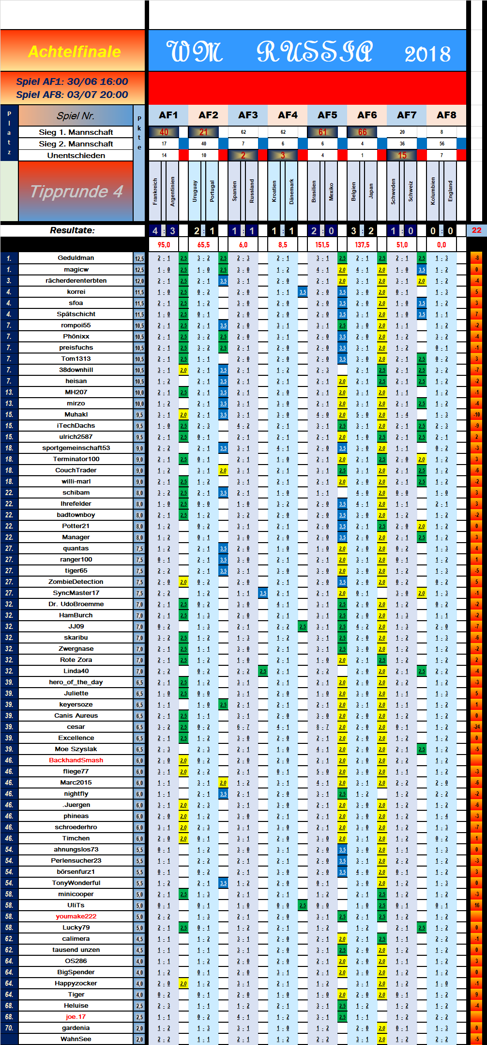 Zur Ausgangslage: Augenblicklich profitiert @-magicw zu 100% vom Zusatztipp und ist virtuell in Führung gegangen und ein @-Spätschicht mit seinem 1:1 Tipp rückt vorübergehend auf Platz 2 vor.