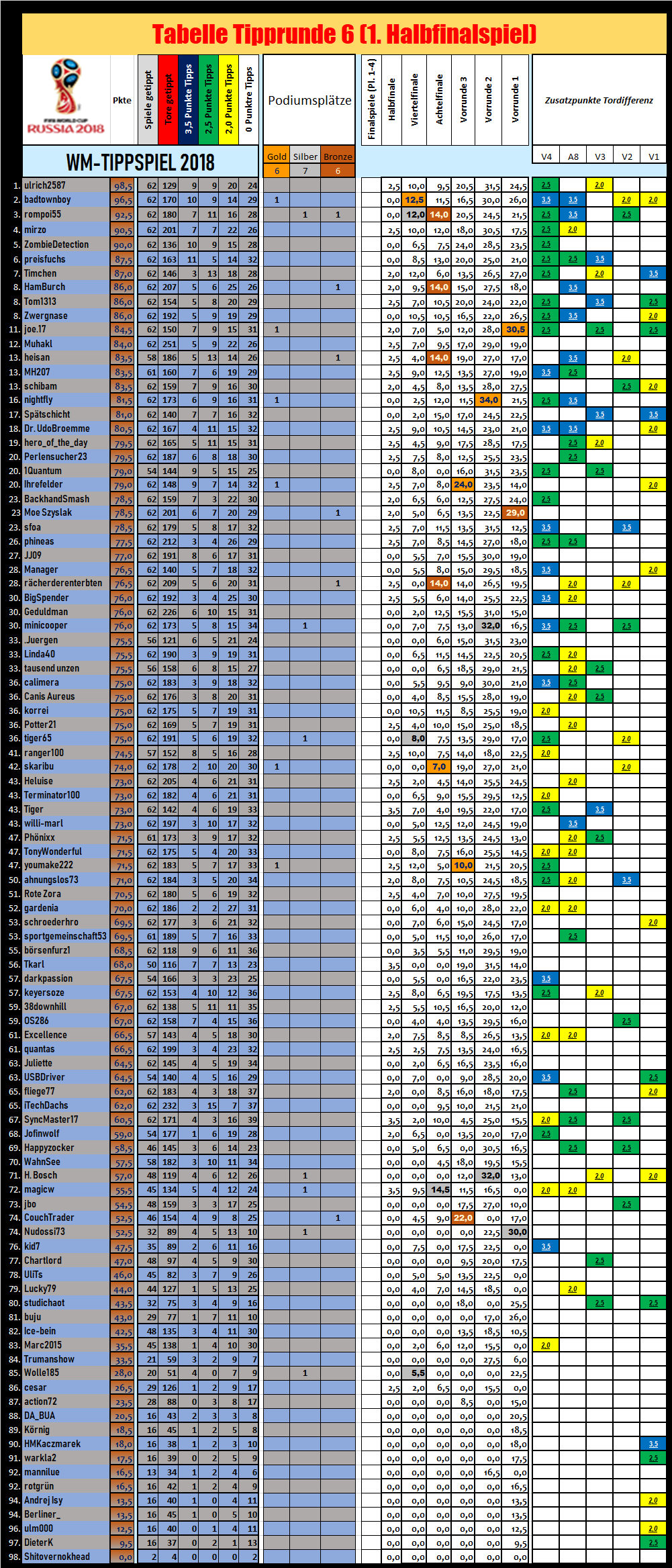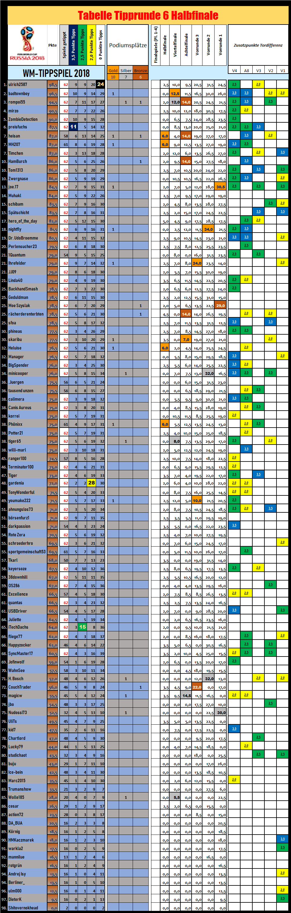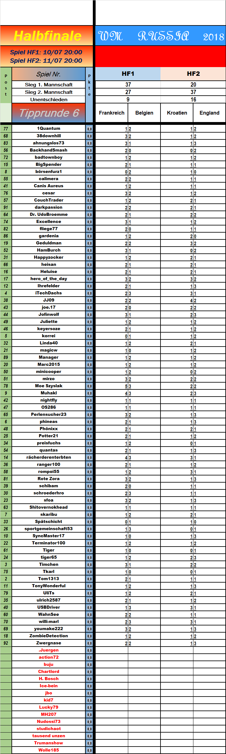 Noch einmal der Hinweis : Bei unserem Tippspiel zählt das Ergebnis nach 120 Minuten! Spieltag ab jetzt ohne Zusatzpunkte für die richtige Gesamttorzahl