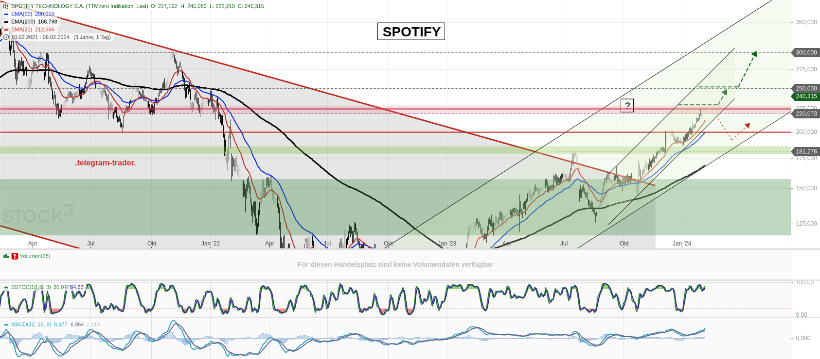Die Spotify schoss am gestrigen Dienstag um fast +11% nach oben und beendete den Handelstag fast auf einem neuen Allzeithoch. Hat sich der Streaming-Dienst zum 18. Geburtstag mit seinem Zahlenwerk selbst ein schönes Geschenk gemacht?