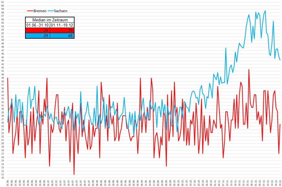 Korrekturfaktoren: Bremen 0,8 / Sachsen 4,88 (% von Schland damit ist Anzahl der Sterbefälle vergleichbar)