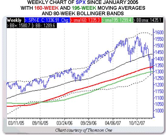 The S&P 500 Index (SPX) closed a point above its 160-week moving average (red line) on yesterday's rally – the key will be today's (weekly) close.[Schlusskurs am 8.2. lag dann bei 1331 Punkten]