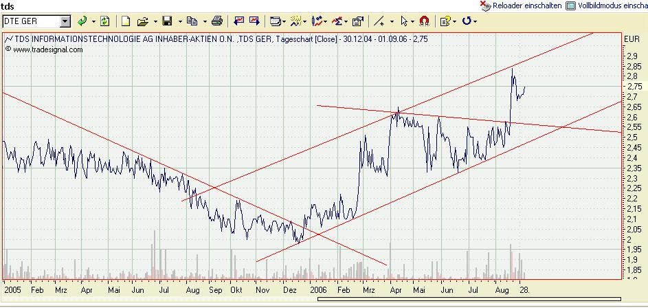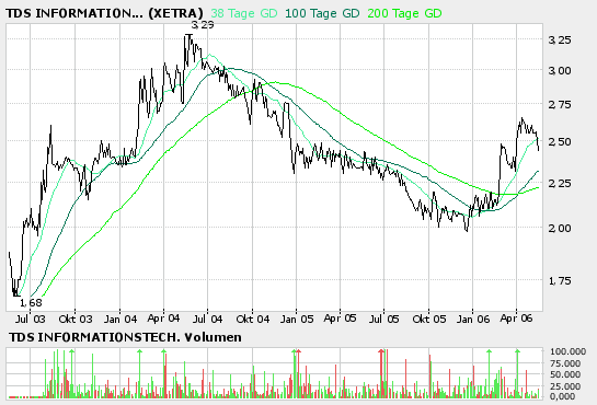 Interessante Aktivitäten am Rande: Die beiden Aufsichtsräte Günter Steffen und Bernhard Dorn kauften in den vergangenen Tagen zu Kursen von 2,41 Euro und 2,50 Euro selbst für mehr als 100000 Euro TDS-Aktien.