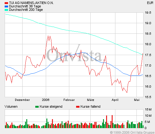Das Unternehmen habe seine Zahlen für das erste Quartal 2006 vorgelegt, die die Erwartungen übertroffen hätten. Demnach sei der Umsatz um 25,1% gg. VJ auf 4,48 Mrd. Euro gestiegen. Dies gehe primär auf die Akquisition von CP Ships zurück. Der Konzern-Nettoverlust nach Anteilen Dritter habe bei 94,3 Mio. Euro gelegen. Die Nettoverschuldung sei von rund 3,8 Mrd. Euro per 31.12.2005 auf 3,6 Mrd. Euro zurückgegangen. Aufgrund von geplanten Desinvestitionen erwarte man, dass der Konzern die Nettoverschuldung im Gesamtjahr auf 3,1 Mrd. Euro reduzieren werde.
