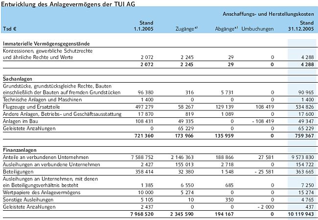 lichkeiten ab, kommen wir zum eigentlichen Buchvermögen der TUI: