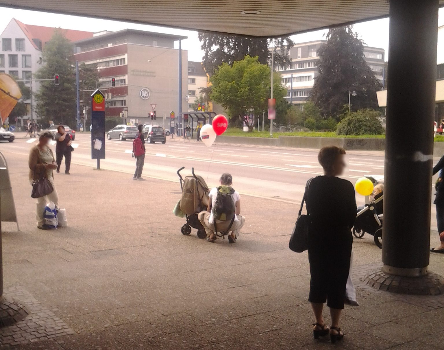 Die Szene ergab sich einfach spontan. Ich bin nur ein paar Schritte zurückgegangen, habe mein Handy rausgeholt und ein paarmal fotografiert, wobei zum Glück ein Foto so war, dass man die Aufschrift auf den mittleren Ballonen lesen konnte.