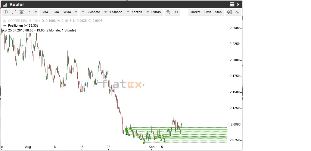 Ist echt ein geiler Tag. Kupfer kommt auch. Das wäre für mich ein echt ungewöhnlicher Trade. Normalerweise gehts erst mal gegen mich. Erst der Schmerz dann der Gewinn ist meine Devise.