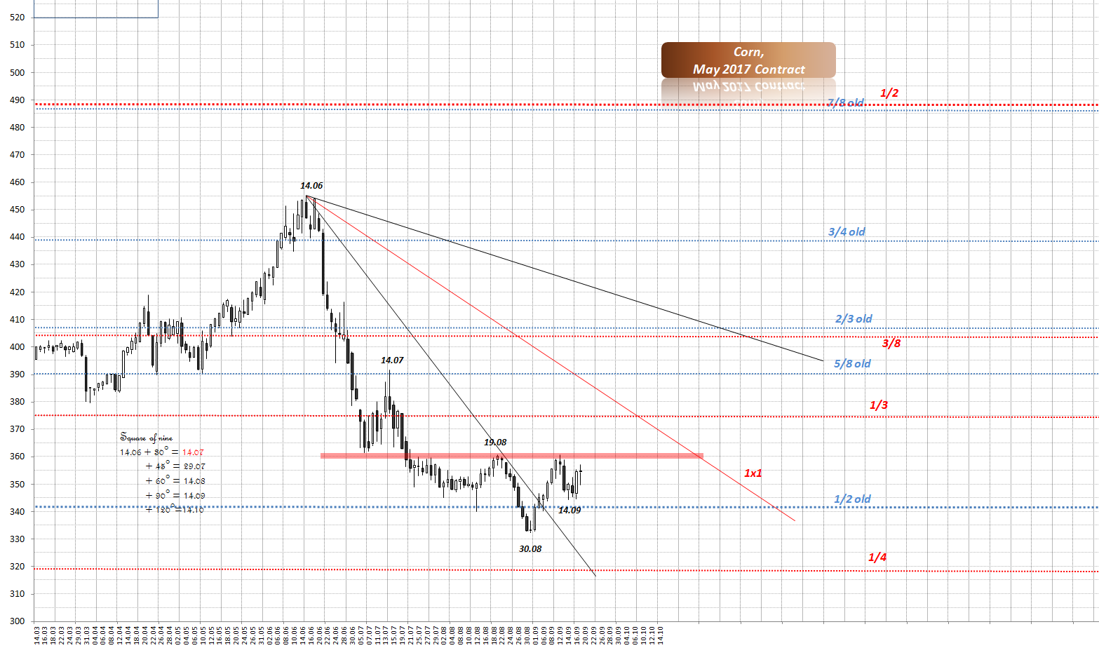 Seit letzten Hochs neigte sich Weizen mehr als Mais und daher befindet sich Mais in der stärkeren Position als Weizen...