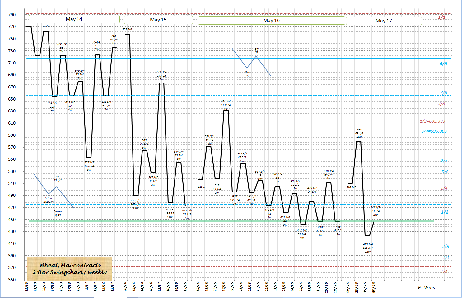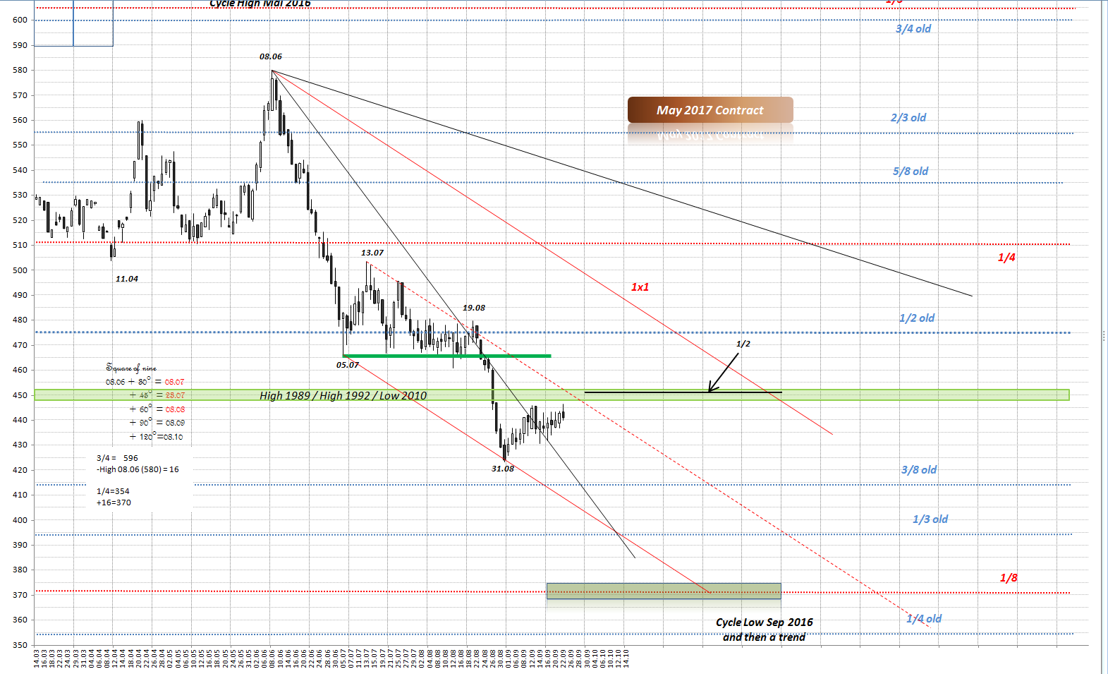 erhollte etwas und bekommt Widerstand. Kontrakt Mai 2016 machte dort 3 Tiefs (siehe Swingchart)