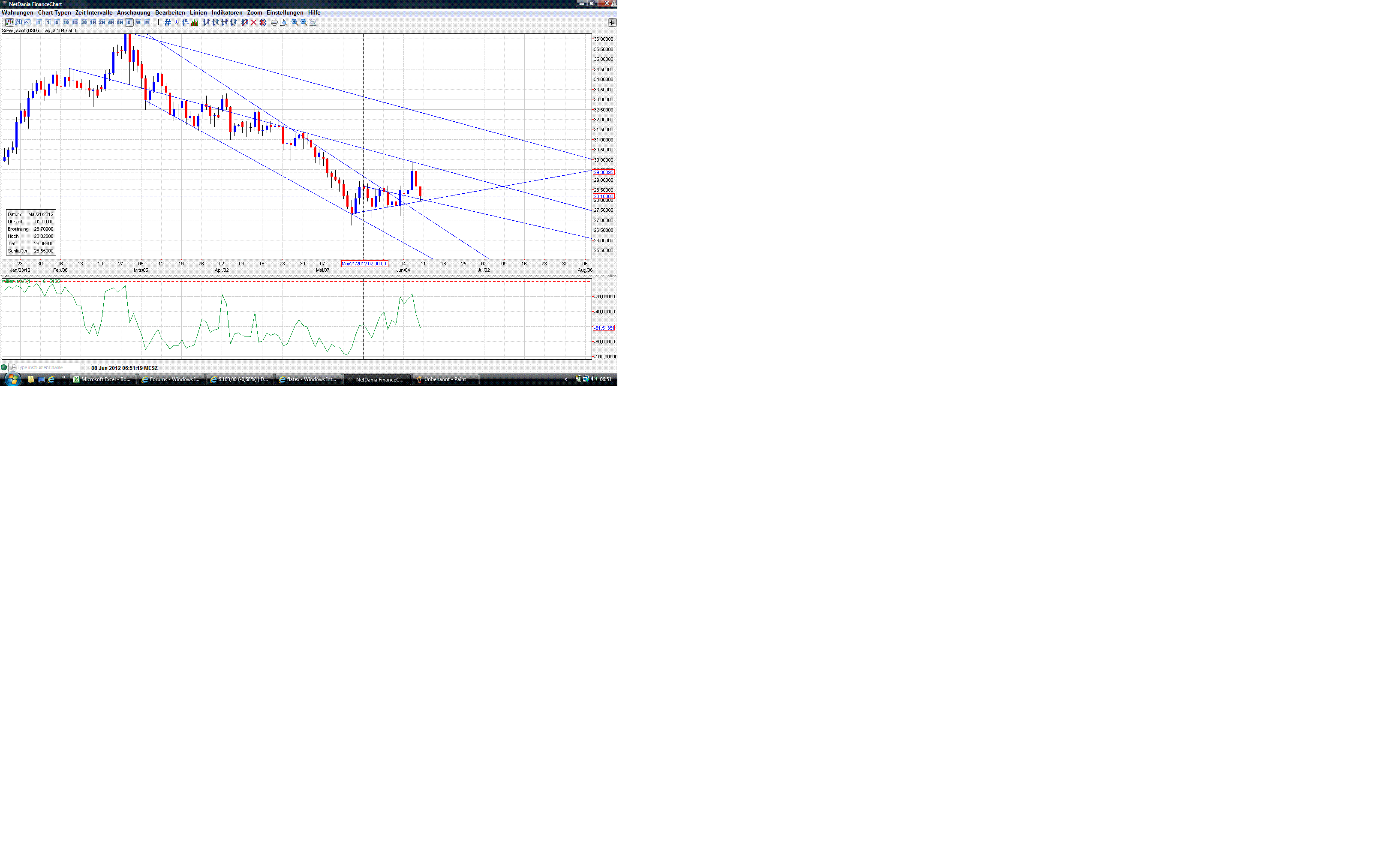 Bis dato wurde diese rechtwinkelige Dreieck schulbuchmäßig abgearbeitet. Das fallende Dreieck mit den überschießen aus dem Trend gehört dazu..