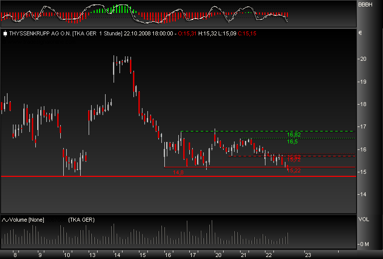 Die Kursralley, nicht nur bei Thyssen, wird kommen, noch im November geht es - hoffentlich - los. Dann spricht keiner mehr von Krise, denn alle haben wieder die $-$ in den Augen. Ich erwarte, das Barack Obama nächster Präsident wird, und das ist sehr gut, nicht nur für die Amerikaner, sondern für uns alle. Und die Kurse werden wieder steigen.