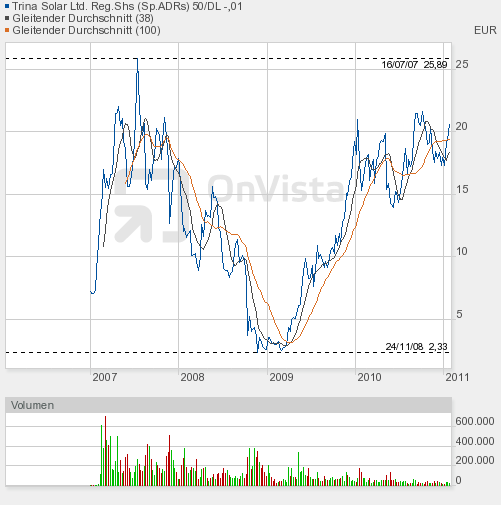 Irgendwie bezweifle ich aber, dass diese exzellente­n Q3-Zahlen Trina Solar kurstechni­sch großarti­g weiterhelf­en werden, denn PV ist derzeit an der Börse alles andere als angesagt.
