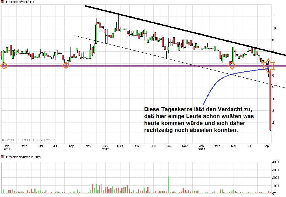 11 Tage später am 16.09.2014 heisst das Ergebnis -80% und ein Kurs von 1,35€!!!