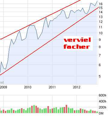 ist erfolgsversprechend.Der Chart zeigt einen Überblich wie sich dieses Unternehmen sich entwickelt hat.Wenn es wie bisher so weiterläuft ,so rechne ich für 2013 mit einem Kursziel von über 30Euro.