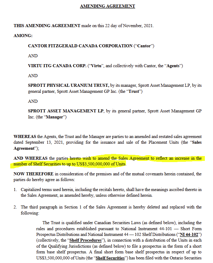 Sprott-hp wurde inzwischen aktualisiert (Stand 19.11.2021), ein weiterer Zufluß von 200T Pfund U3O8.