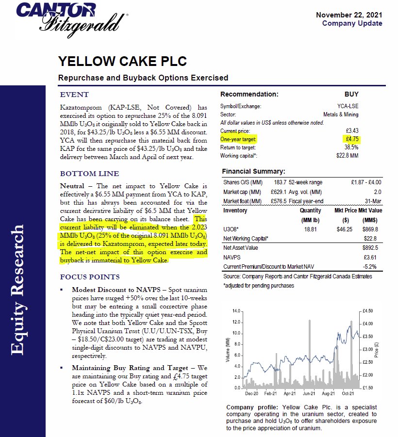 "Urban Stocks" geht in seinem neuesten Video zu Uran (20.11.2021) ebenfalls von einem Sprott-Bestand von 21 Mio. Pfund aus: