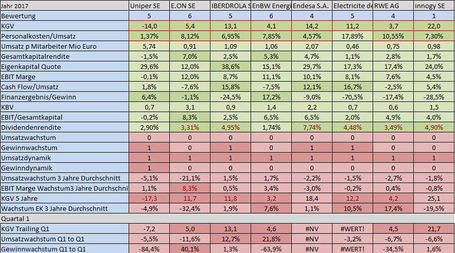 Ein Vergleich einer Basisdaten des europäischen Versorgersektor sollte das werden. Der Versuch ist angehängt denn tatsächlich sind die Bilanzen durch speziell die Aufspaltung des deutschen Versorgersektors sehr komplex geworden.