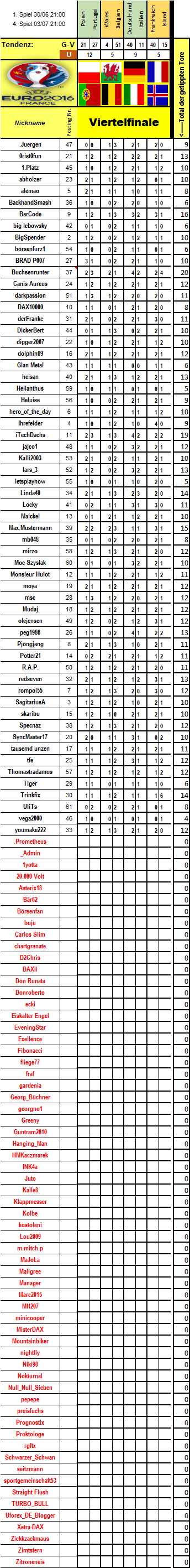 ≣ EM 2016 Tipp-Runde 5, Viertelfinale