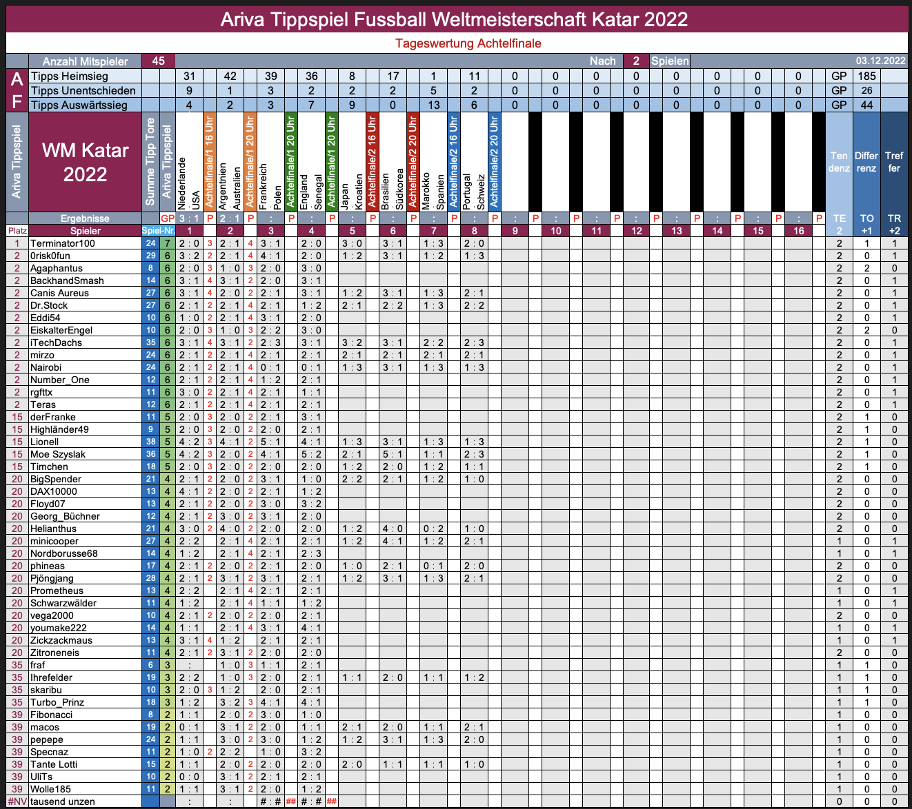 >>>  WM 2022, TippR 5 Katar, das Achtel, Teil 2 ...