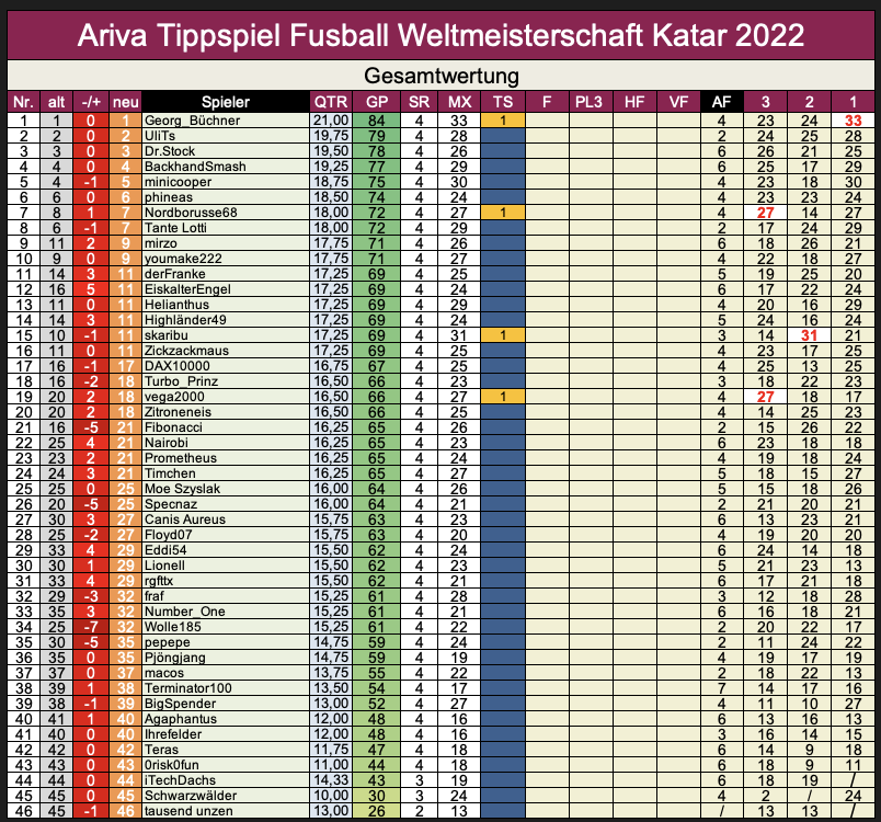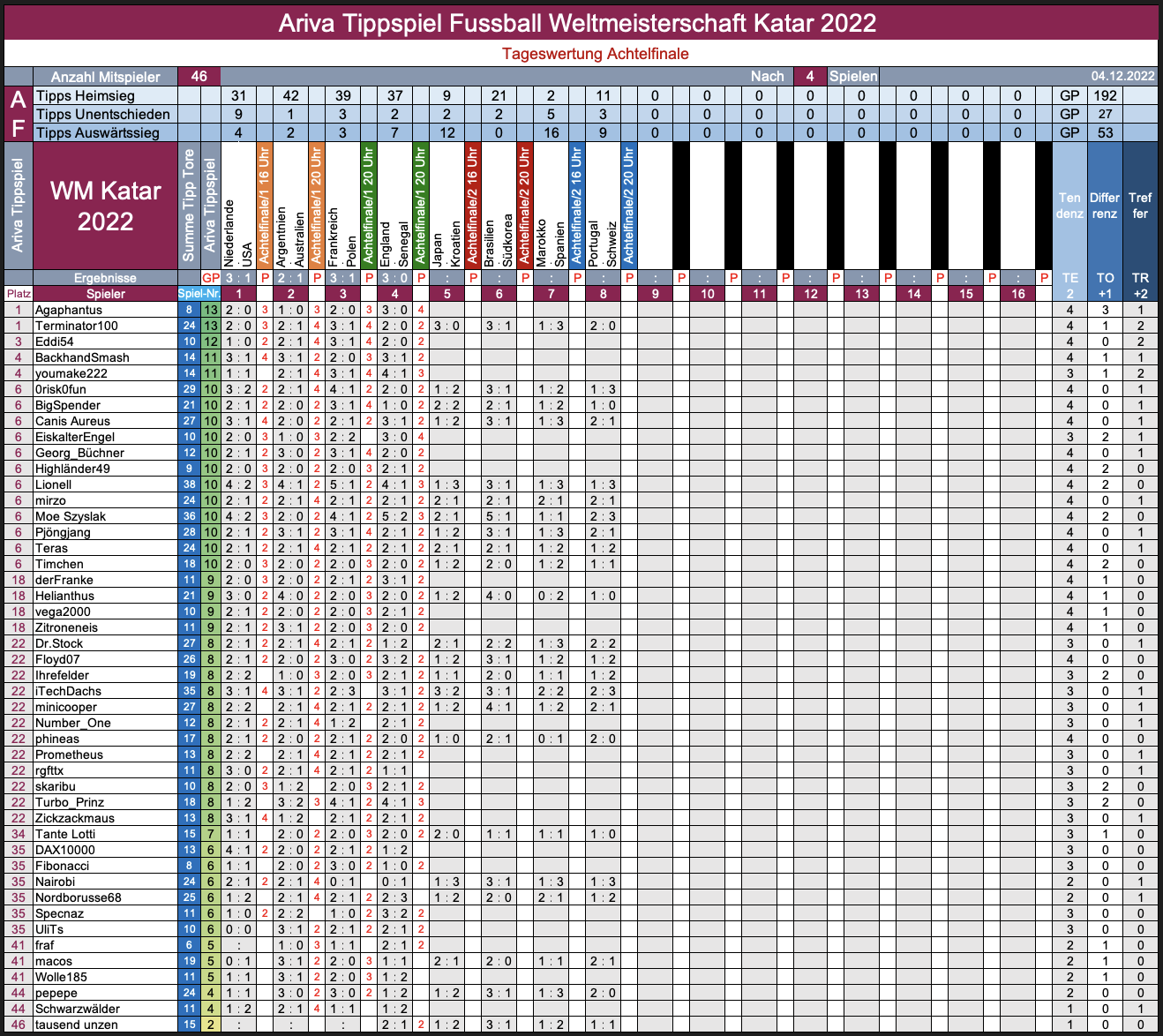 >>>  WM 2022, TippR 5 Katar, das Achtel, Teil 2 ...