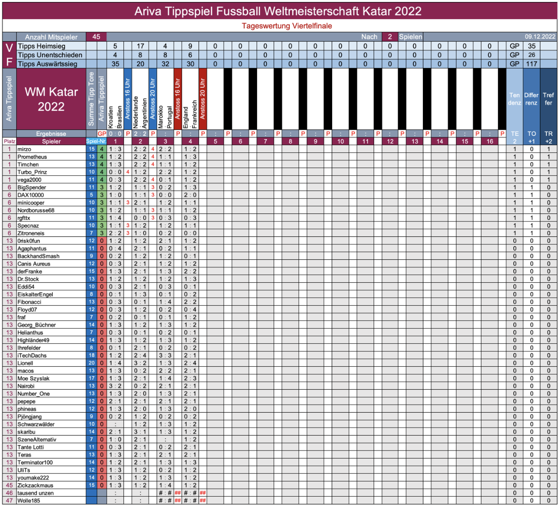 Und die Auswertungen zur WM-Runde 5 gibt es dort: WM 2022, TippR 5 Katar, 5.Spieltag...