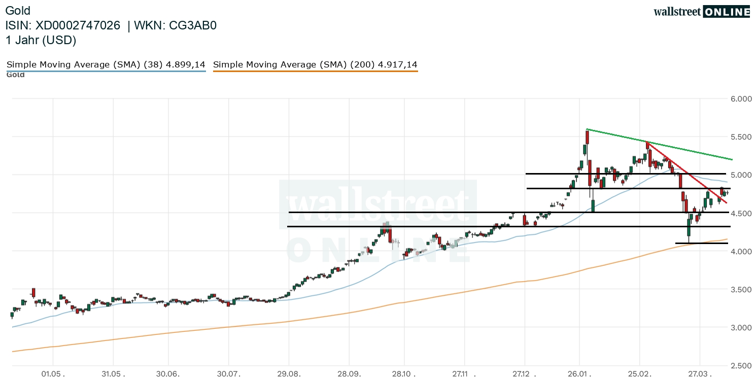 Im März hat es beim Goldpreis unter anderem durch die Zinsspekulationen den stärksten Monatsverlust seit 2008 gegeben, als die Pleite der US-Bank Lehman Brothers eine große Finanzkrise ausgelöst hatte. Dennoch liegt der Preis für das Edelmetall derzeit immer noch etwa zehn Prozent höher als zu Beginn des Jahres. Ende Januar hatte die Notierung bei knapp 5.600 Dollar ein Rekordhoch erreicht.