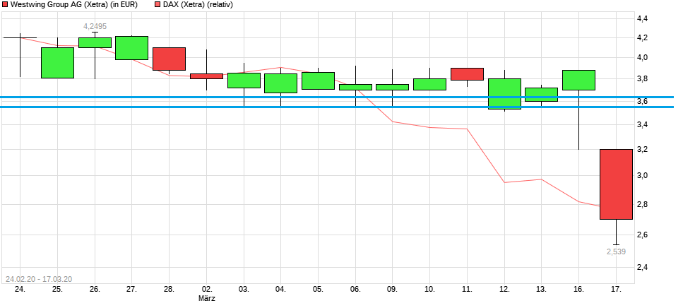 Die letzte Zeit hatte der Kurs von Westwing ja völlig ignoriert was an der Börse sonst passiert. Da wurden nachrichtenlos die Kurse in einer engen Range gehalten für irgendwelche (Wechsel-/Eindeckungs-) Spielchen. Offenbar ist dieses Spiel ab heute vorbei und der Kurs holt nach was er die letzten Tage versäumt hat bzw. scheint wieder den freien Kräften des Marktes ausgesetzt zu sein.