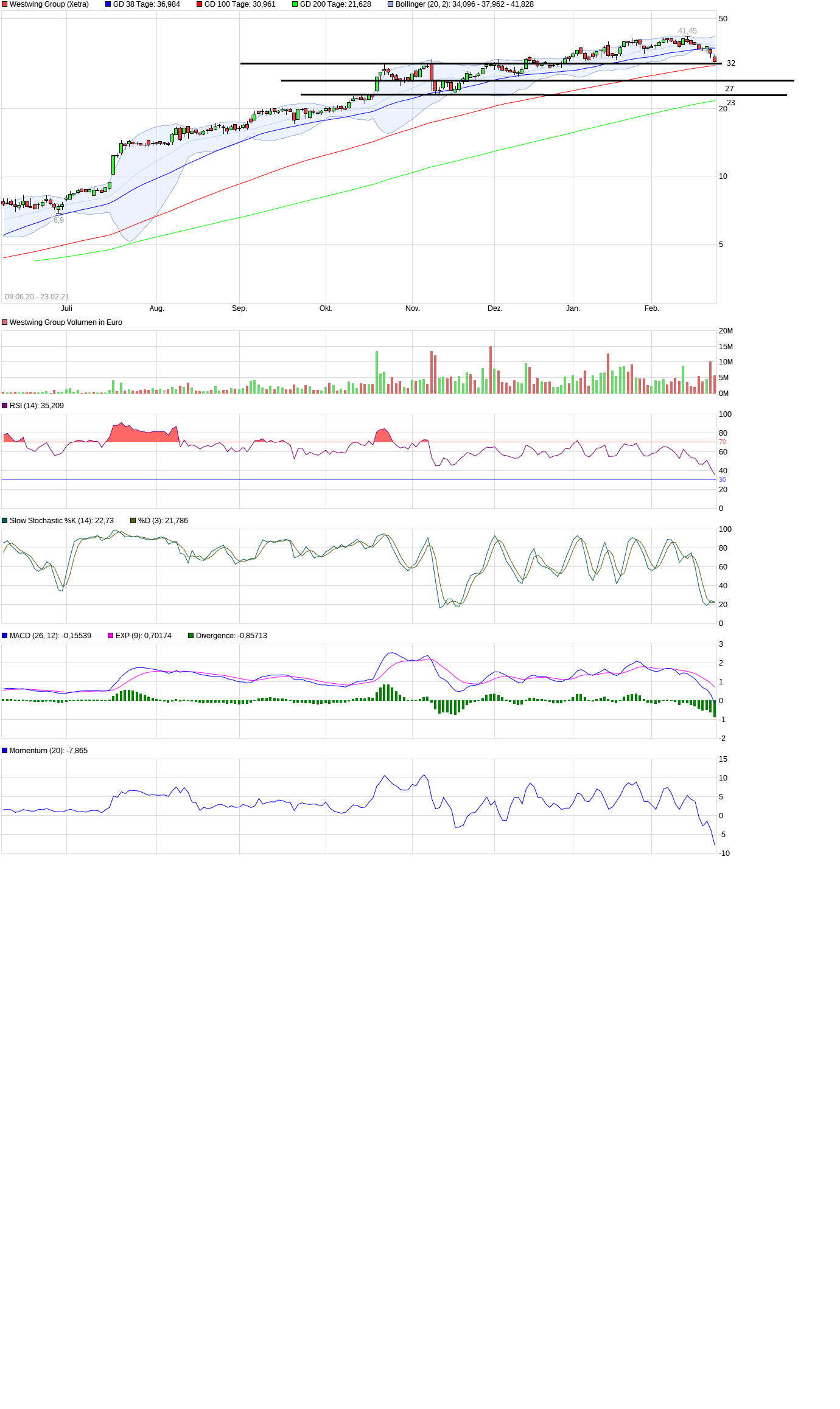Seitwärtsbewegung zwischen 30 und 40
