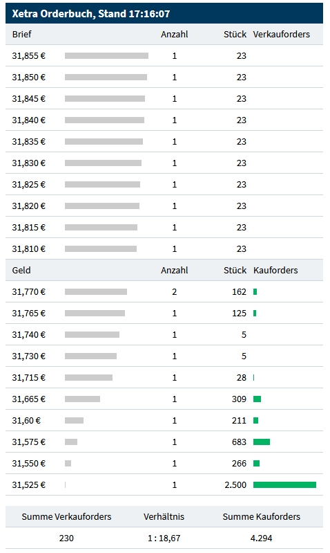 Zu 17:16 Uhr Orderbuch (...zahlreiche gleiche Kleinorders (23) in 0,5 Cent-Abständen).