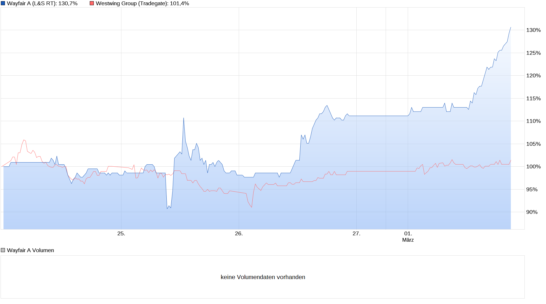 es aber genau nimmt, dann ist das ATH bei westwing erst drei Wochen her, bei wayfair aber über 6 Monate. Nur durch den Abverkauf der letzten beiden Handelswochen war man jetzt wieder auf der Kurshöhe von Anfang Dezember. Aber wie gesagt, wenn sich wayfair hält oder ggf sogar noch weiter steigt, dann wird westwing bei passablen Zahlen folgen.