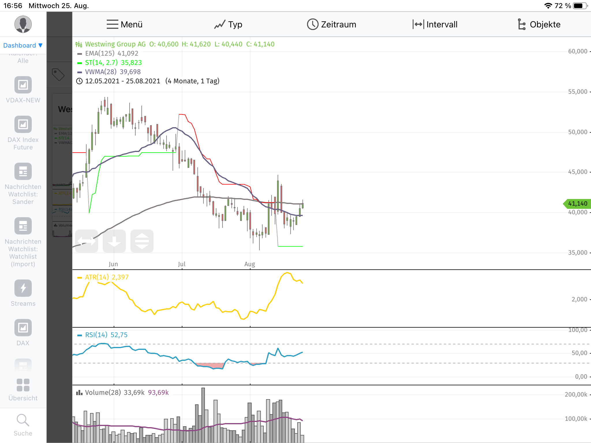 in dieser Unterstützungszone pendelt, mache ich mir wenig Sorgen. Nur dieses Abtauchen unter 38 € zwischendurch, das kostet Nerven...